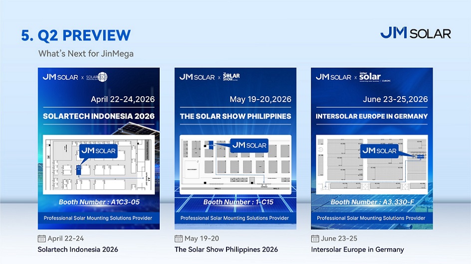从创新到执行,从全球拓展到团队发展,第一季度为 2026 年奠定了坚实的基础。JinMega 将继续致力于提供可靠的太阳能支架解决方案,并在全球范围内创造长期价值。